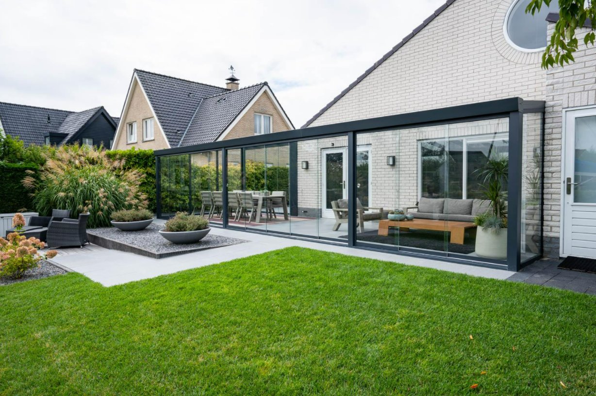 De Giallo overkapping is herkenbaar door zijn robuuste look en zijn strakke uiterlijk. Deze overkapping ziet er niet alleen stevig uit, maar is ook daadwerkelijk extra verstevigd. Hierdoor is het mogelijk om met minder staanders een veel bredere overspanning te maken, dit zorgt voor een ruimtelijk gevoel.